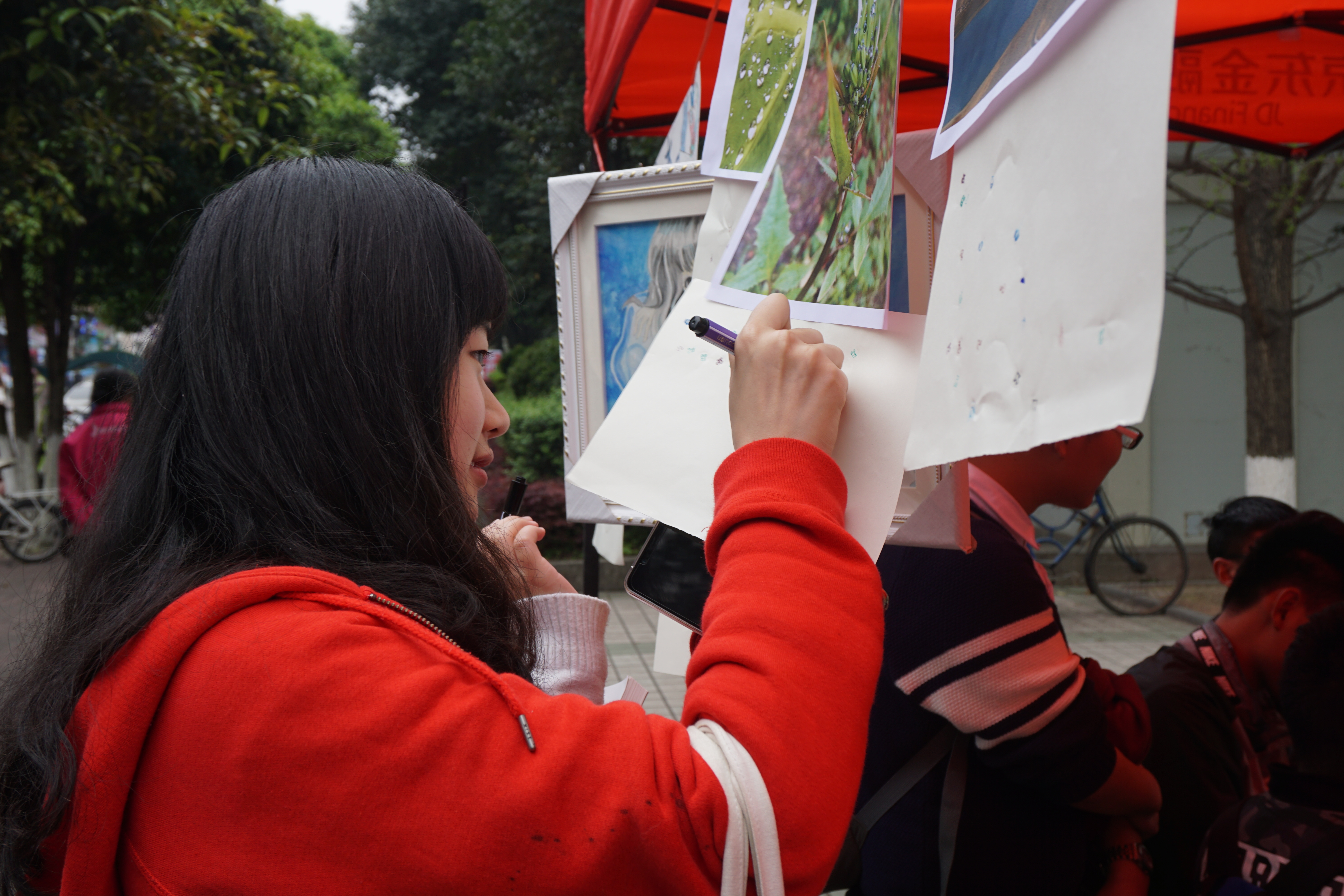 面向雅安校区全体同学的作品征集活动共征集到书法、绘画、摄影和微信推文四类作品七十余份。无论是表现山河秀美、绿水青山的风景摄影,还是工整有力、刚柔拙巧的硬软笔书法作品,亦或是富有创意、别出心裁的绘画类作品,都将“惜水护水”理念融入其中,响应了今年世界水日的宣传主题。艺术与思想的结合引起了过往同学们的内心共鸣,他们纷纷驻足并为自己喜欢的作品投上一票。其中,绘画作品《浪费的罪恶》、摄影作品《寒露》以及书法作品《三峡》获得同学们的广泛支持。